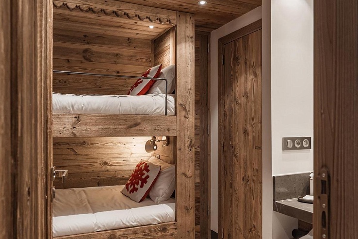 The chalet can accommodate up to 10 guests in its four en-suite bedrooms and a bunk room. It includes a family suite with a double bedroom and an adjoining bunk room, as well as three double bedrooms with en-suite shower rooms,