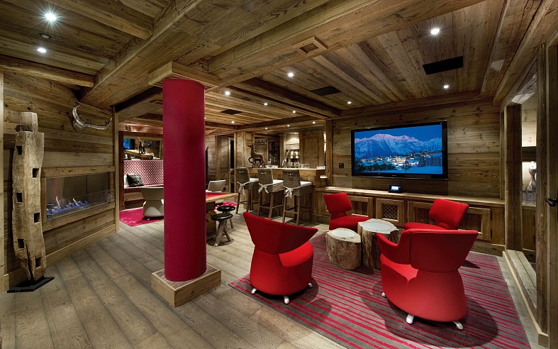 Spanning 755 m² across five levels, the chalet offers ample space for relaxation. The top floor features a spacious and sophisticated lounge, a TV room, a dining area with a fireplace, and a fully-equipped kitchen – the perfect setting to unwind and share experiences with family and friends.