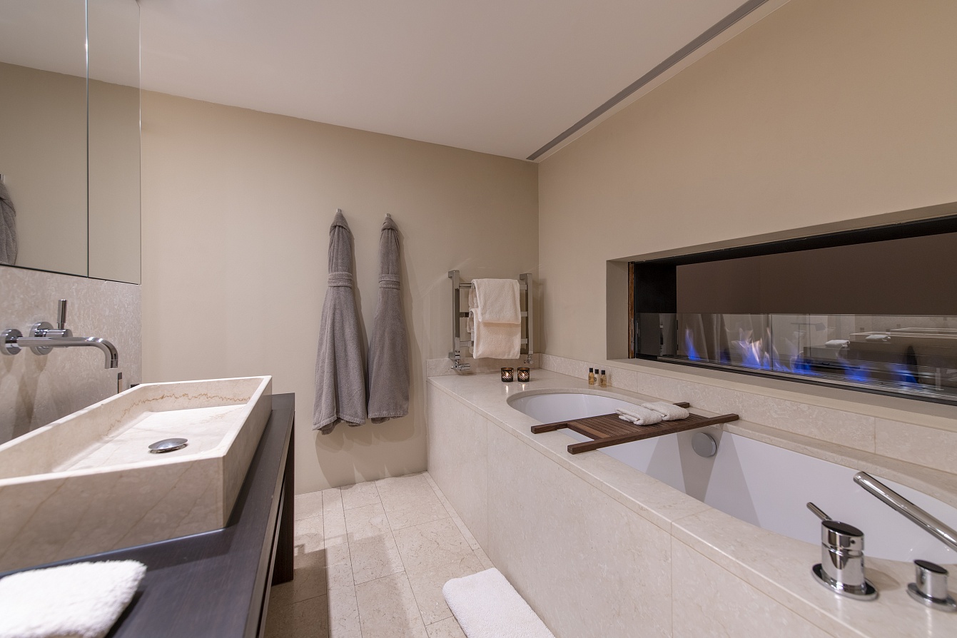 The ground floor spa is a haven of serenity with a central water feature, sauna, Hammam, massage room, and a hot tub on the terrace. The massaging bubbles of the hot tub soothe your body, providing the ultimate relaxation.
