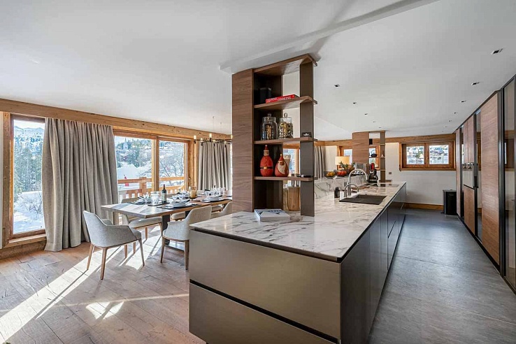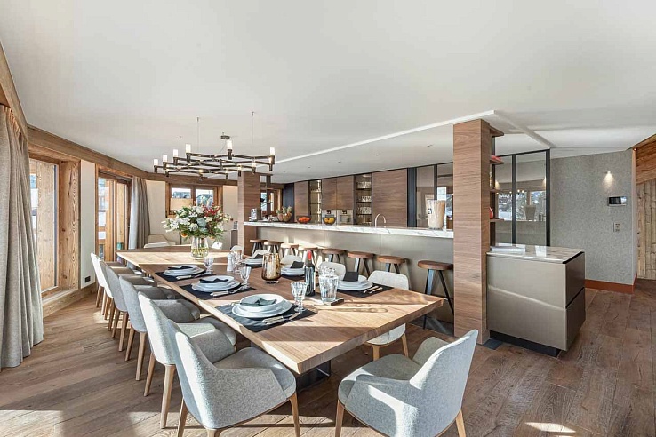Nestled in the heart of Courchevel 1850, just 250 meters from the resort center and a mere 50 meters from the slopes, Cour284 is perfect for both skiers and non-skiers alike. With the Plantrey ski lift only 200 meters away, guests have easy access to the vast Three Valleys ski area. Designed for large families or groups of friends, the chalet comfortably accommodates 11 adults and four children.