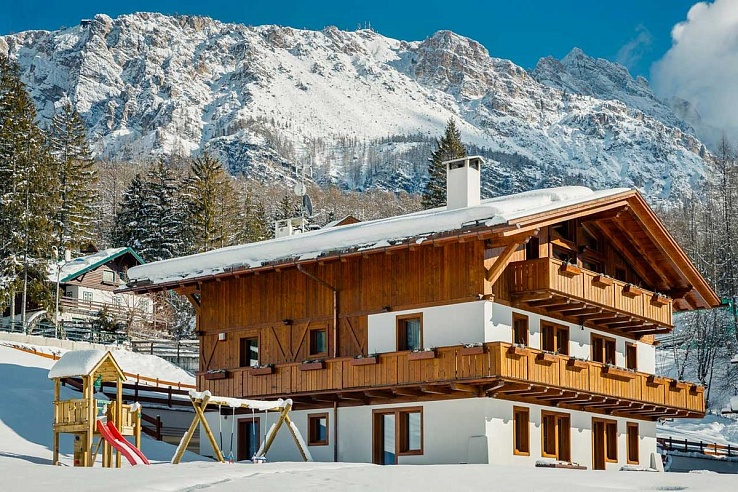 Nestled within a private 7,000m² estate in Via Menardi, Cortina’s most prestigious address, Cort275 Dolce Vita offers unparalleled panoramas of the Dolomites. This 900m² four-level retreat accommodates 12 guests in six luxurious bedrooms, featuring a 20m indoor pool, private spa with waterfall Jacuzzi, and a state-of-the-art cinema. Exclusive services include a Michelin-trained chef and 24/7 chauffeur.