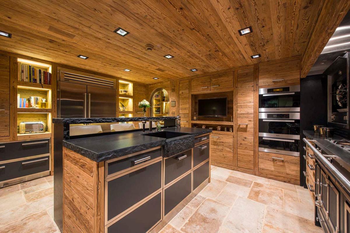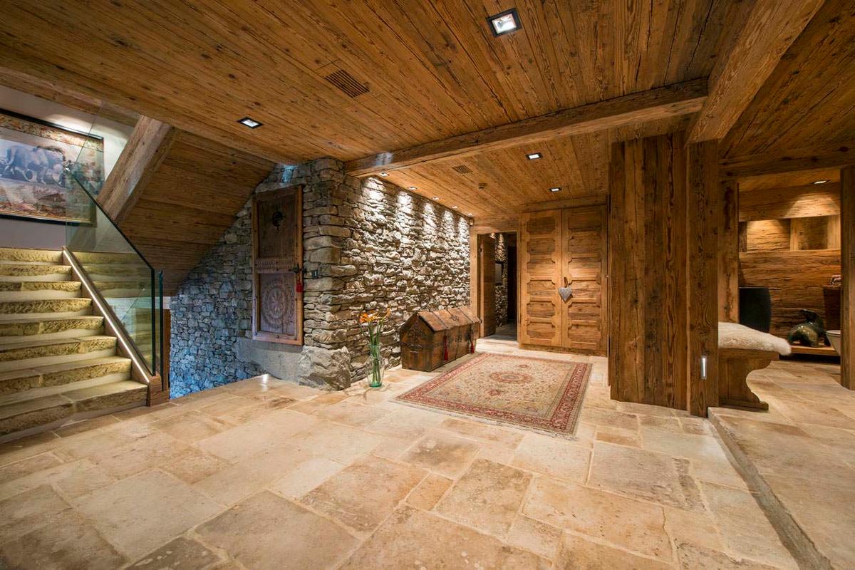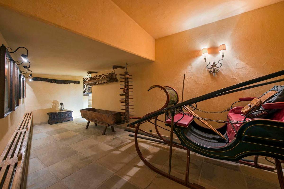 For wine enthusiasts, the chalet boasts an extensive and impressive wine cellar stocked with numerous rare vintages. Surrounded by expansive balconies and terraces, guests can relish views of the majestic mountains in the distance, with several bedrooms also offering direct access to these outdoor spaces.