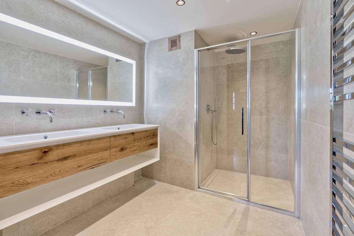 For added entertainment, the lower ground floor boasts a home cinema with a projector for movie nights. For relaxation, indulge in the 10×4m pool with a counter-current feature or unwind in the steam room accommodating six. Fitness enthusiasts will appreciate the well-equipped gym with a bike and elliptical trainer. Further amenities encompass a laundry room, ski storage equipped with boot heaters, and a garage.