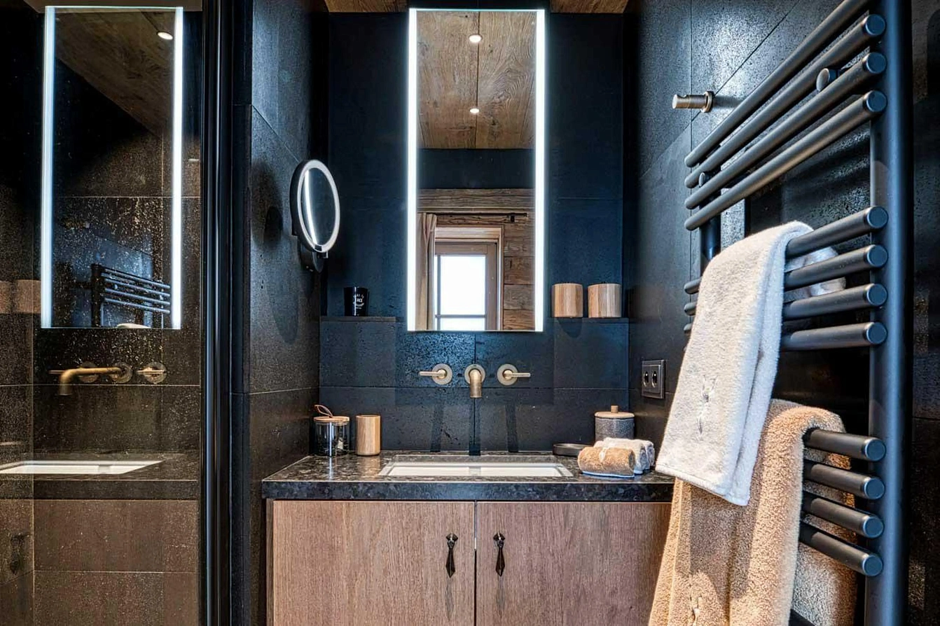 Val-490 ensures a sanctuary of sleep across its six beautifully appointed bedrooms. The master suite is a true retreat, featuring a cozy ethanol fireplace, a dressing area, and an impressive en-suite bathroom with a double Italian shower. Four additional double bedrooms, each with their own en-suite shower rooms, provide serene comfort for adults. For families or younger guests, a dedicated quad bunk room on the lower ground level, complete with an en-suite shower room and terrace access, offers a fun and exciting space for four.