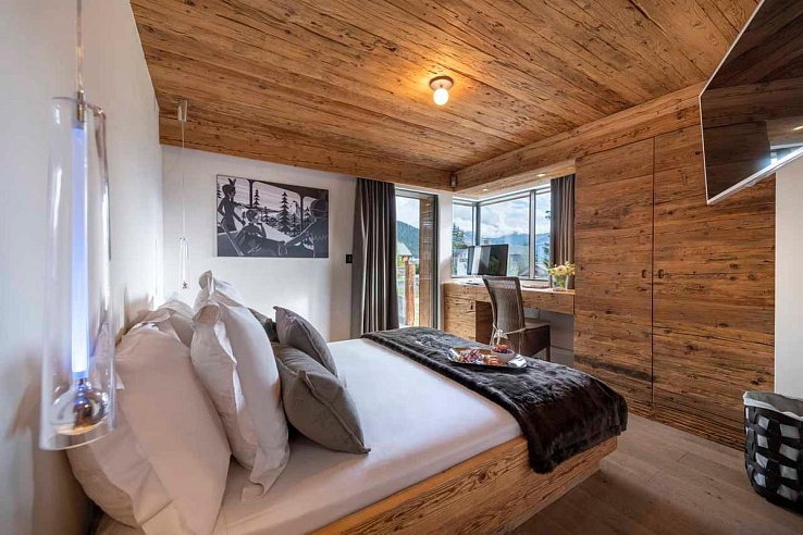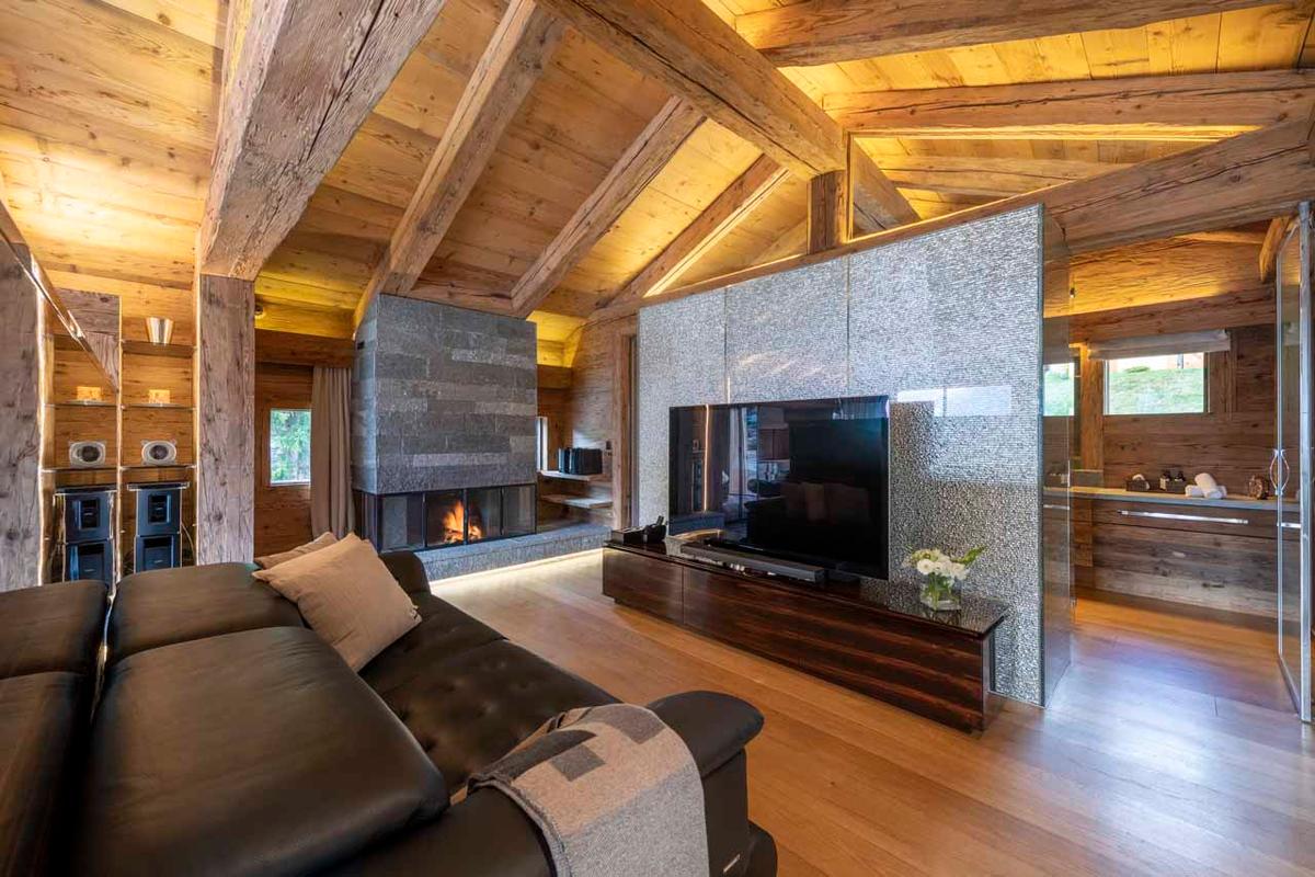 Spread over two chalets, connected by an external pathway, this mega residence in Verbier is perfect for accommodating up to 18 guests in its 9 lavish bedrooms.