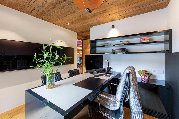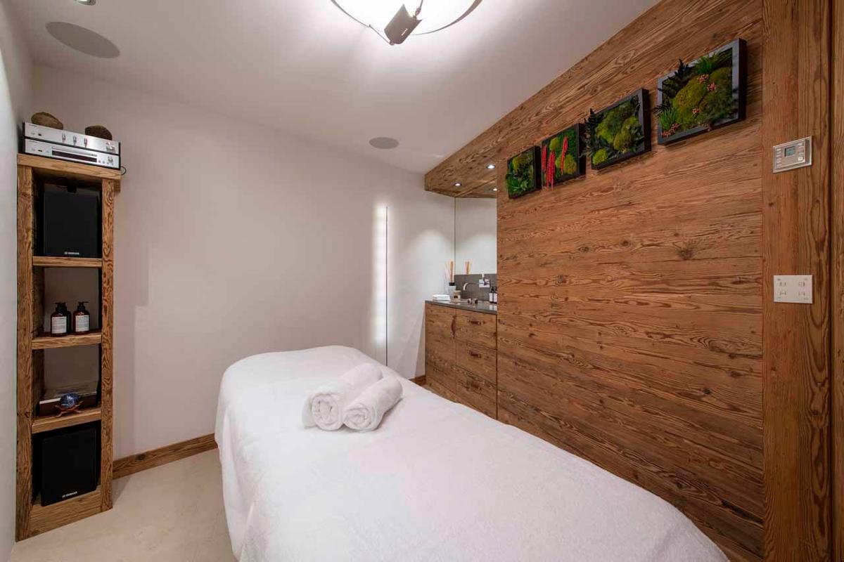 The chalet boasts an exceptional spa featuring a 17m indoor swimming pool, relaxing daybeds, sunken hot tub, sauna, hammam, massage room, and a well-equipped gym. For ski enthusiasts, there's a dedicated ski room, and a conference room is available for corporate groups interested in renting the chalet.