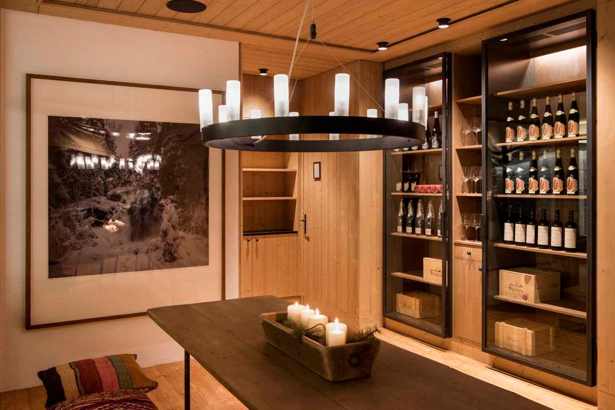 Perfectly positioned on a blue run in the prestigious Oberlech area, Lech461 provides direct access to the slopes and is just a five-minute walk from the centre of Oberlech. This newly built, four-story chalet sleeps up to 14 guests in sublime comfort. Its design masterfully blends dark wood, traditional Austrian furnishings, and subtle lighting to create a profoundly cosy yet luxurious atmosphere. The heart of the home is the first-floor living area, featuring an open-plan layout with a dining space, a bar, and an expansive balcony for taking in the magnificent mountain vistas.
