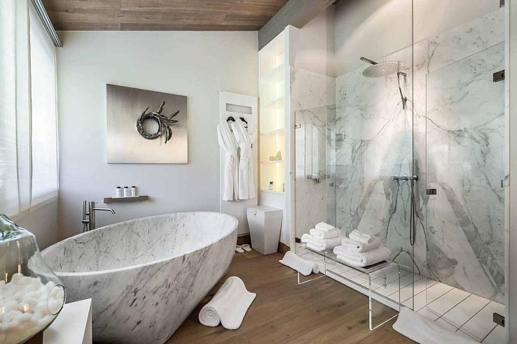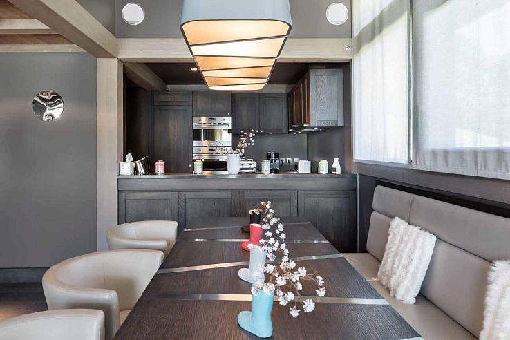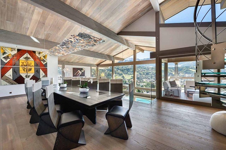 Nestled along the Jaillet piste, Mege230 offers direct ski-in/ski-out access and is just a two-minute drive from the center of Megeve. With a generous 1,200m² of space, the chalet comfortably accommodates 12 adults and three children. Arrive in style by landing on the chalet’s private helipad, then immerse yourself in the luxurious indoor and outdoor surroundings.