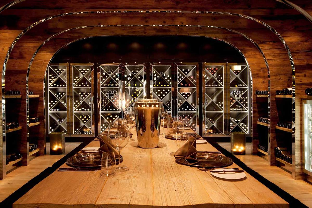 Descending further down, you'll discover a meticulously curated wine cellar showcasing an impressive selection of wines amid stunning interior design. Additionally, there's a chic home cinema where guests can enjoy classic films or the latest releases. A heated ski room within the chalet ensures a seamless start to the day's skiing adventures.