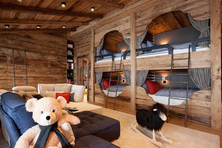 The penthouse master suite, featuring a fireplace, is crafted to delight the most selective of guests, while a fantastic children's quad bunk room with a sitting area caters to younger visitors. State-of-the-art technology is seamlessly integrated throughout the chalet, featuring 3D TVs and multizone media hubs for optimal entertainment and convenience.