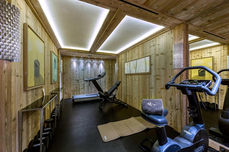 The lowest level houses a beautiful spa area with a large indoor pool and a relaxing bar/lounge. Additional wellness amenities include a sauna, steam room, fully-equipped fitness room, and a massage room, with a hot tub on one of the terraces.
