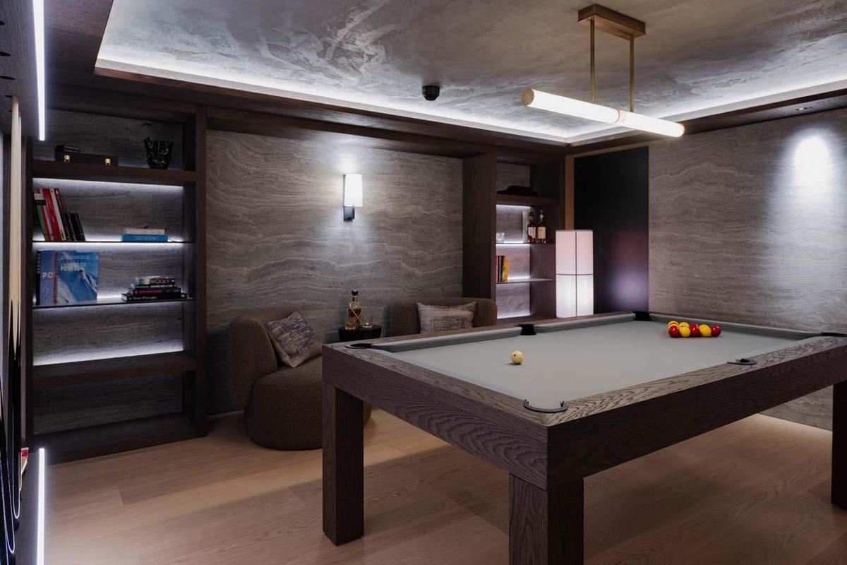 The chalet’s spa area has been newly upgraded for the 2023/24 season and features a magic thermic swimming pool, sauna, snow machine, and steam room – perfect for unwinding after a day on the slopes. Guests can also relax in the home cinema, which includes an oversized U-shaped sofa, or enjoy the chalet's other amenities, such as the billiard room, office, and ski room.