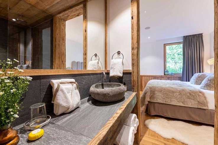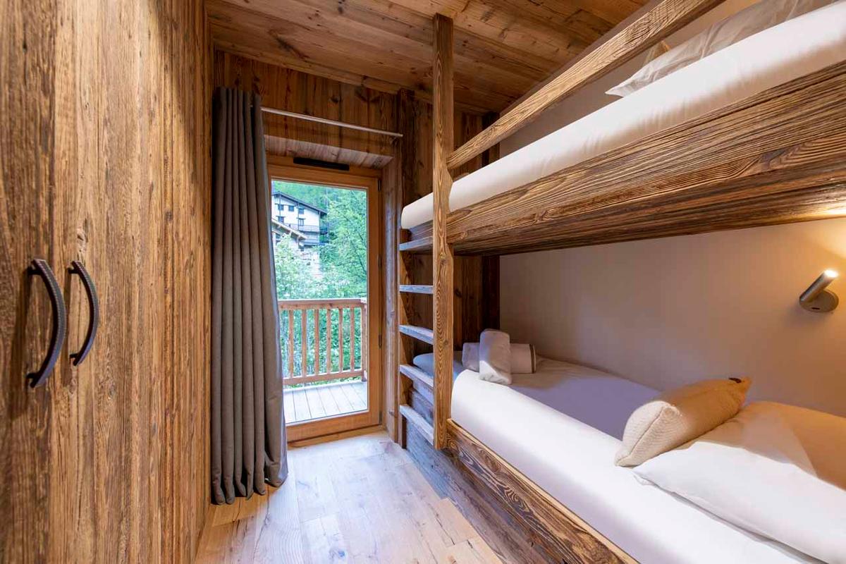 Val-357 can accommodate up to eight adults and two children across its four bedrooms. On the ground floor, you’ll find three bedrooms, including a master suite with an open bathtub. The other two bedrooms can be configured as doubles or twins. The fourth bedroom, located on another floor, includes a double bed and a bunk bed, making it an ideal family suite.