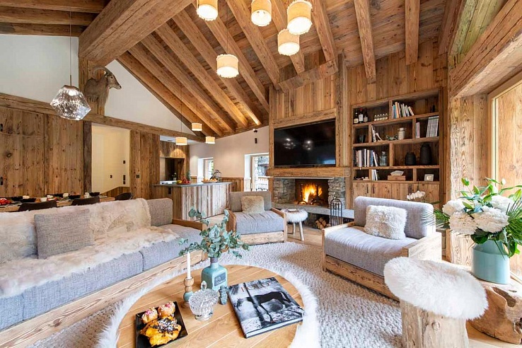 Val-357 is situated in Fornet, a peaceful hamlet just outside Val d'Isère, known for its traditional Savoyard charm. The chalet is conveniently located only 100 meters from the slopes and a short drive or bus ride from the center of Val d'Isère. Spanning three floors and offering 200 m² of living space, Val-357 boasts picturesque views of nearby chalets and stunning mountain peaks. For larger groups, it can be rented alongside Chalet Akaroa, a neighboring five-bedroom chalet, accommodating up to 18 adults and four children in total.