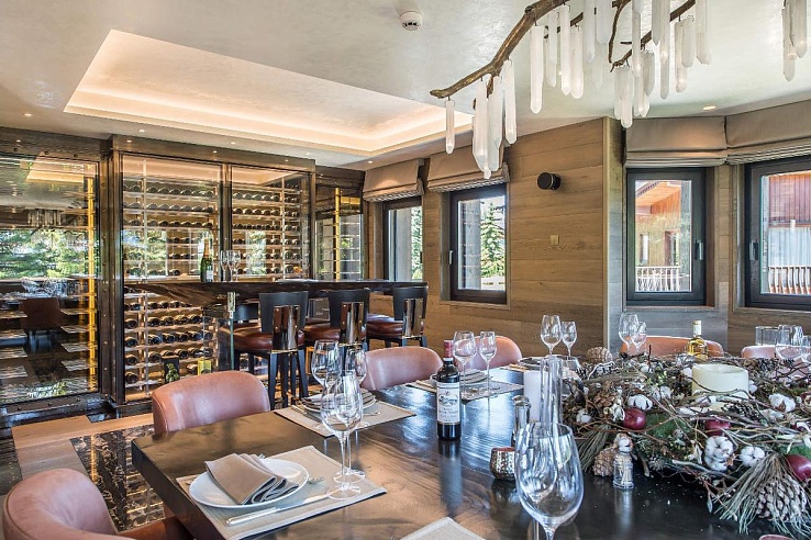 Nestled 1300m from the resort centre on the Cospillot slope, surrounded by pine trees, this exclusive 687 m² property spans five floors connected by an internal lift, offering ski-in/ski-out access and generous living spaces. The chic designer decor and upscale amenities create an atmosphere of modern elegance.