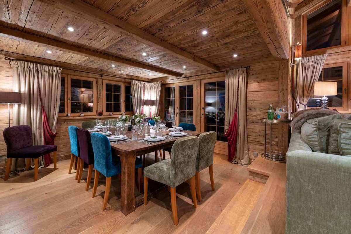 Spanning across four floors, this luxury chalet accommodates up to 11 guests in six bedrooms.