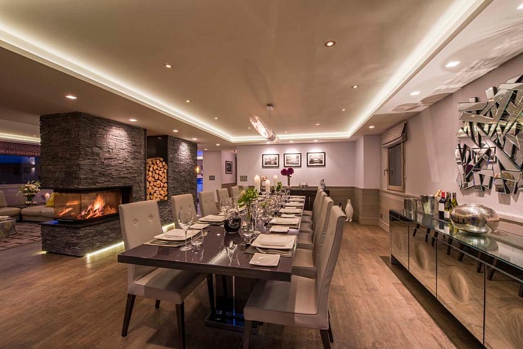 Recently refurbished, this expansive 425 square meter chalet spans four floors, boasting ample living spaces and a host of impressive features. With accommodations for up to 14 guests across seven uniquely designed suites.