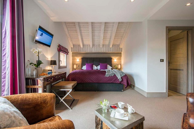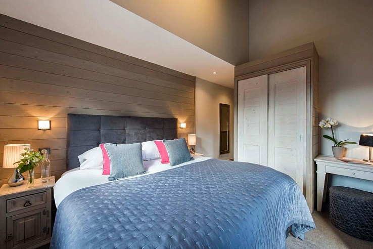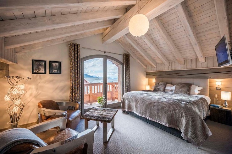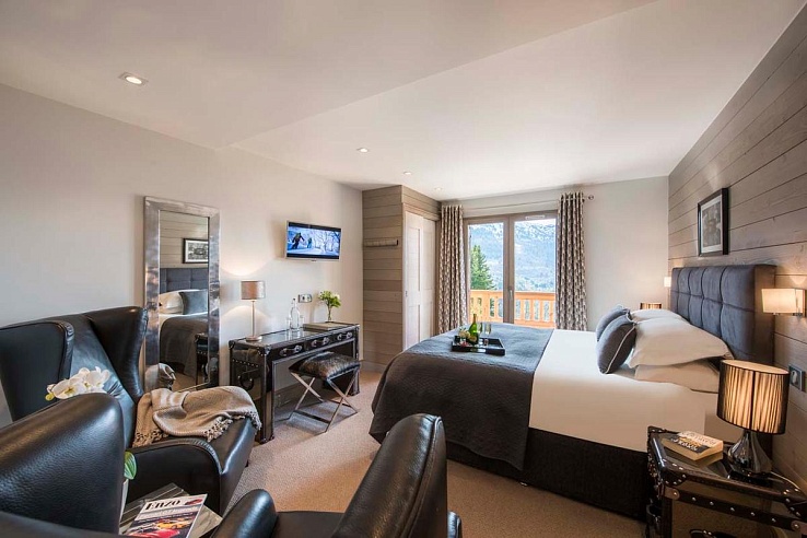 Each of the chalet's seven bedrooms is named after a renowned Cambridge University college, with distinct decor reflecting this theme. Master suites boast dressing tables, cozy armchairs, and private balconies, while all rooms offer the flexibility of being configured as either double or twin bedrooms.