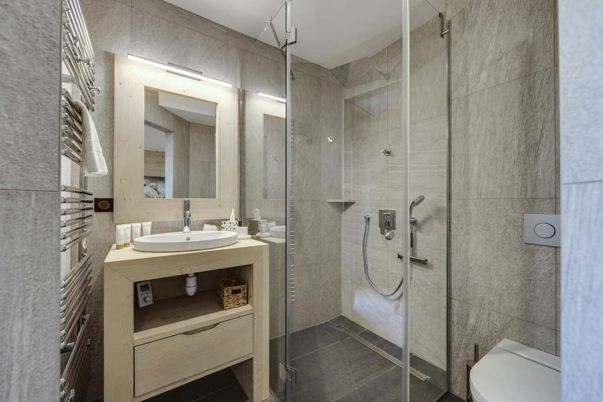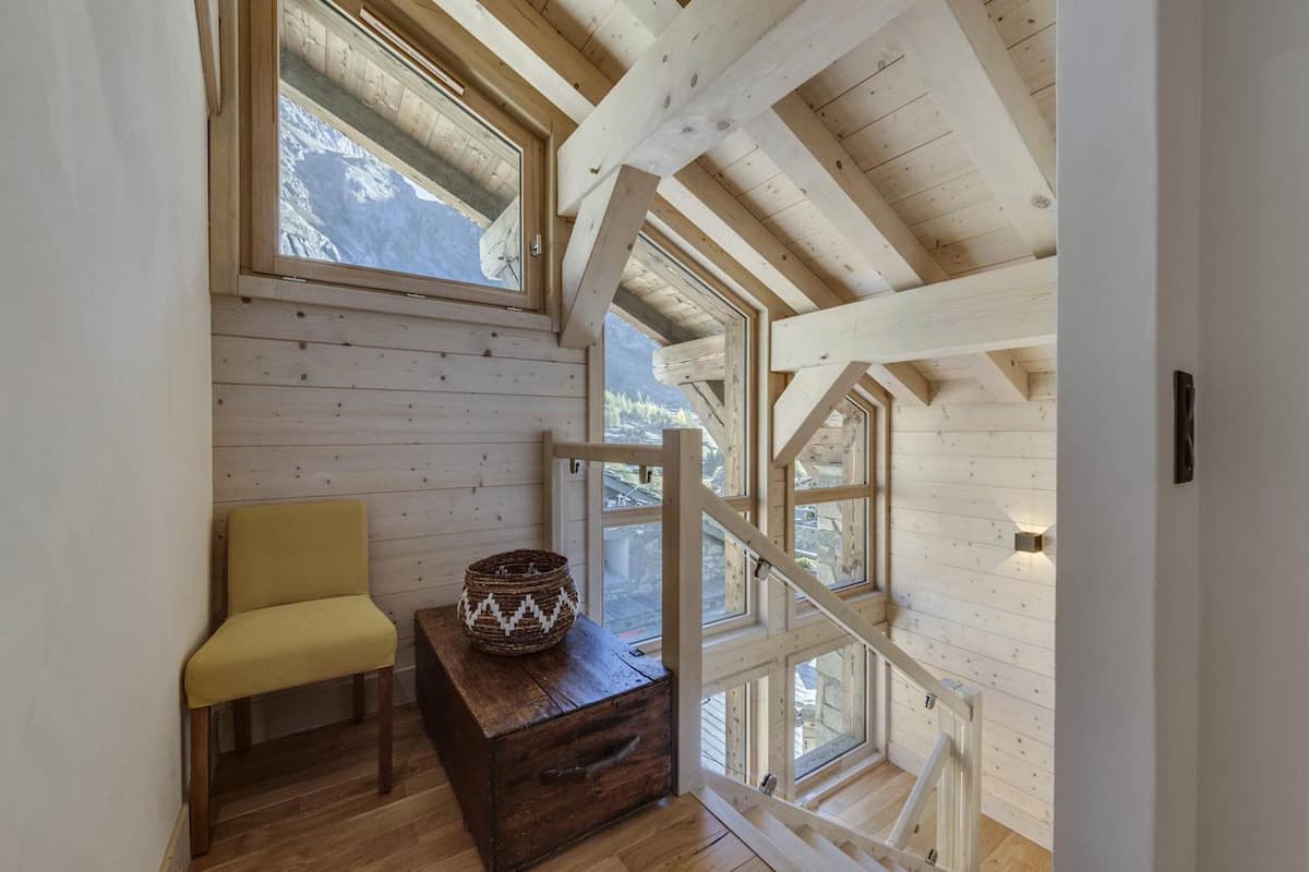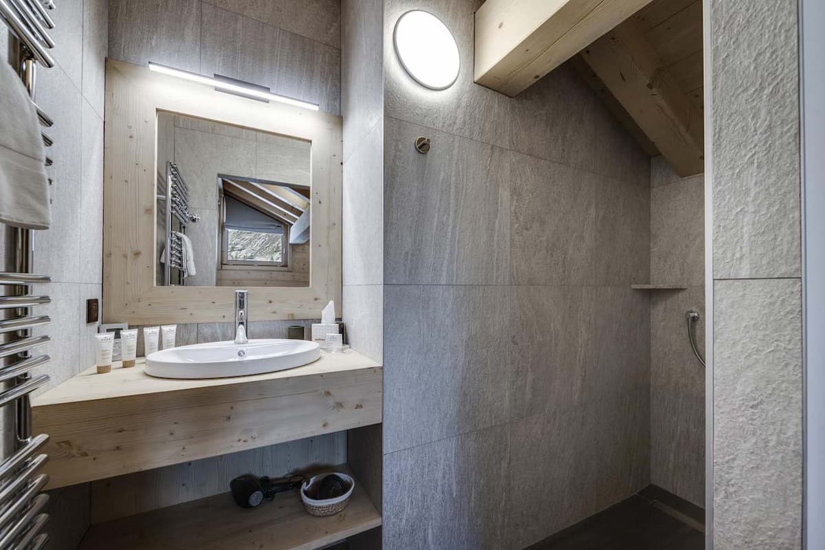 On the first floor, you’ll find a bright and spacious open-plan living area complete with a TV and a cozy fireplace. The modern, fully equipped kitchen overlooks the dining area, which opens onto a large deck with stunning mountain views. This level also features a sauna, perfect for unwinding after a day on the slopes.