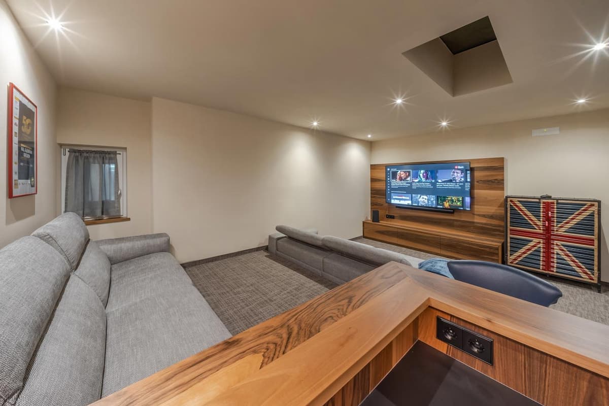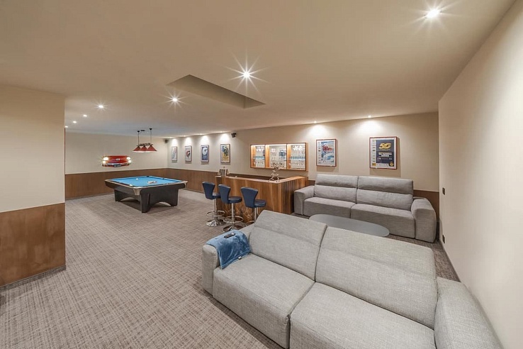 For après-ski indulgence, the chalet offers a dedicated cinema/games room replete with a billiards table, a bar, plush sofas, and a sizable flat-screen TV. Moreover, guests can savor wine-tasting experiences in the separate wine cellar, exclusively reserved for charming cheese and wine evenings.