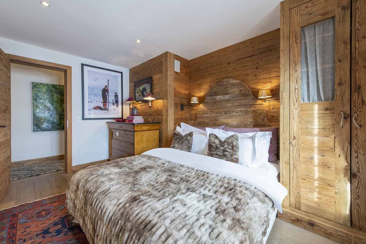 Verb333stands as one of Vervier’s most exceptional properties for rent. Situated on the second floor of a building, it boasts the convenience of a lift that opens directly into the spacious open-plan living and dining area. Exuding rustic charm, the apartment showcases exquisite furnishings, luxurious materials, and alpine-inspired decor. A centerpiece stone fireplace, encircled by plush fur-draped armchairs and sofas, offers the ultimate cozy retreat after an exhilarating day on Verbier’s ski slopes. French doors lead to a south-facing balcony complete with a private hot tub, perfect for unwinding in style.