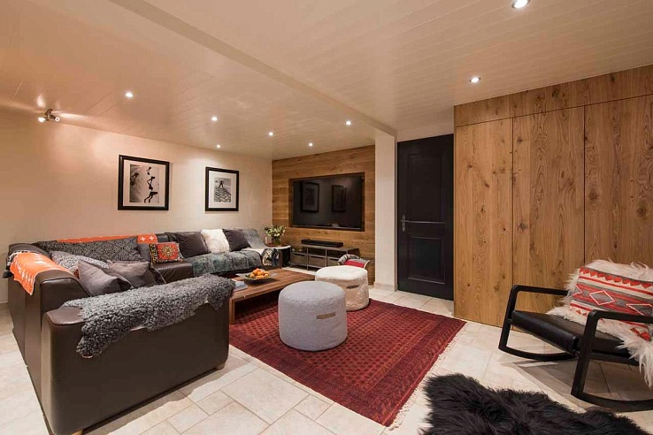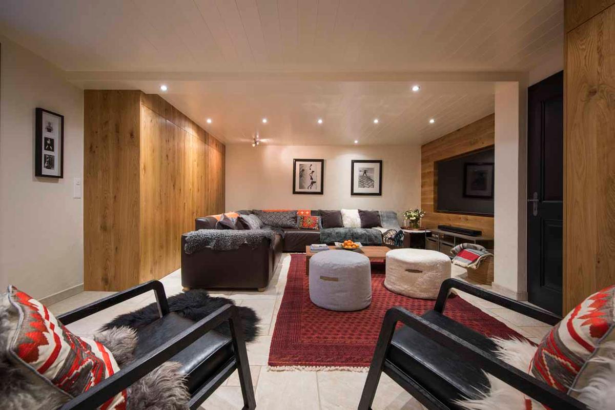 The lower ground floor is designed for relaxation after a day on the slopes, with a private 11-meter indoor swimming pool, steam room, massage room, and TV room.