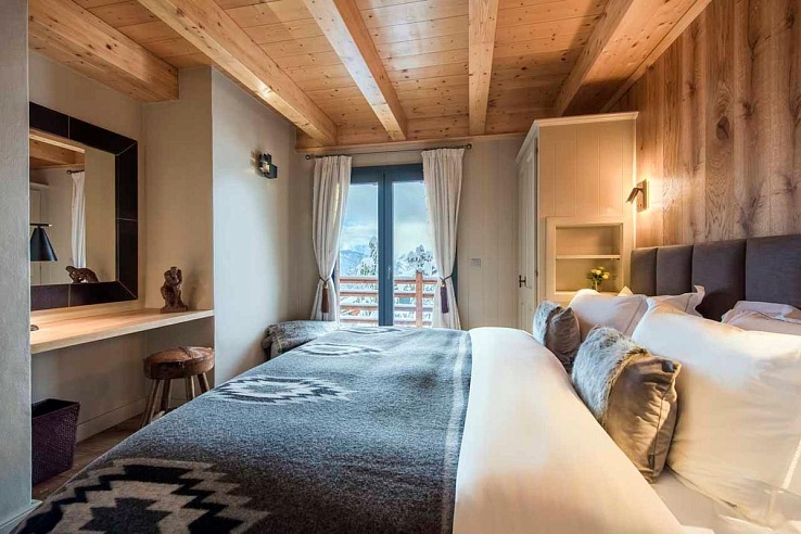 The chalet offers five en-suite bedrooms, each with its own bath or shower room. Four of the bedrooms feature stunning views from wrap-around balconies. Additional amenities include sky TV, underground parking, and a laundry room.