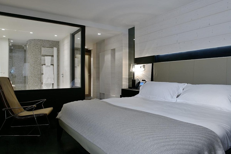 A sophisticated masterpiece in black, cream, and gold, Cour83, nestled in the Bellecôte hamlet, is just an 8-minute stroll to the town centre of Courchevel 1850, featuring an exquisite blend of modern French luxury.