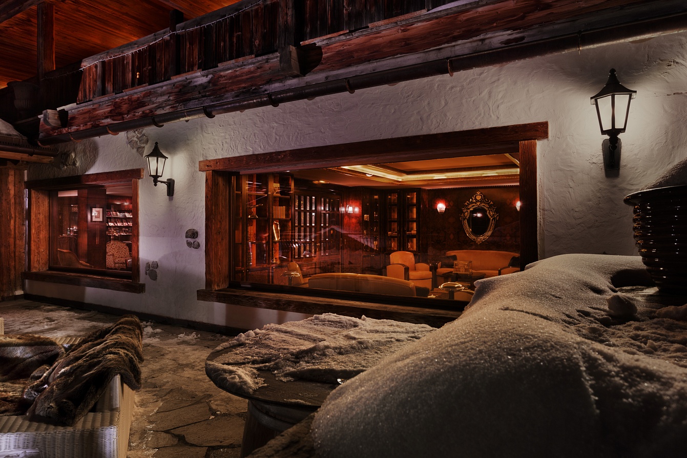 The ground floor of the chalet hosts the main living area, where you can find a grand living room with two fireplaces, a cocktail bar and comfortable sofas. This is the perfect place to enjoy a drink and chat after a day on the slopes. Next to the living room is a library with another fireplace, a piano and a selection of books and games. You can also access one of the large terraces from here, where you can admire the stunning views of the valley and the mountains.
