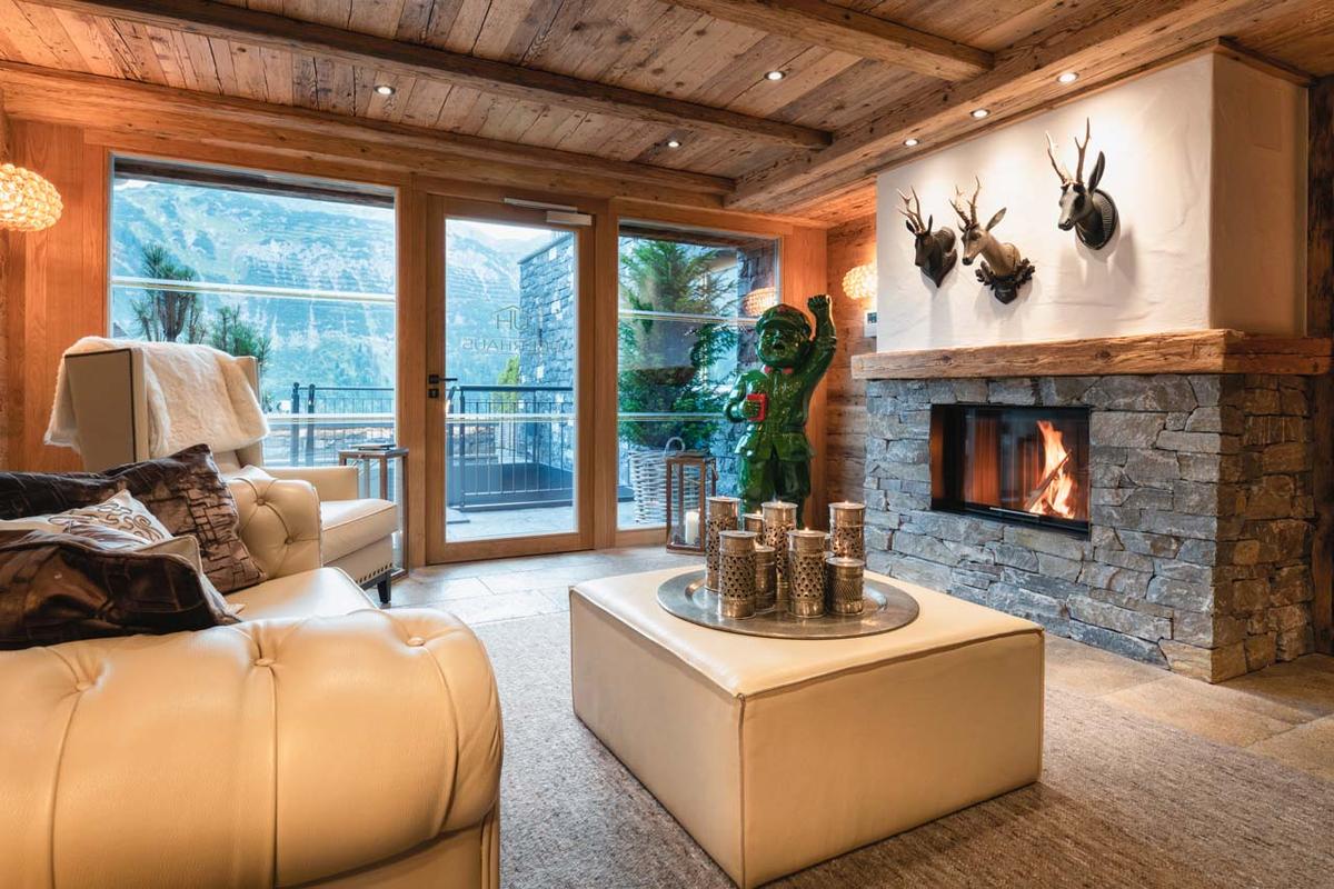 Upon entering this remarkable chalet, guests are welcomed by the warmth of an open fireplace in the ground-floor hallway. The first floor is dedicated entirely to a majestic open-plan living and dining area, with a table seating up to 16 for entertaining. Fine wines are housed in the chalet's basement cellar. Sliding doors can separate the well-equipped professional kitchen from the dining area. Large balconies on the upper floors provide stunning south-facing panoramas. The balcony off the living area features an 8-seater table, comfortable deck chairs, and unparalleled mountain views.