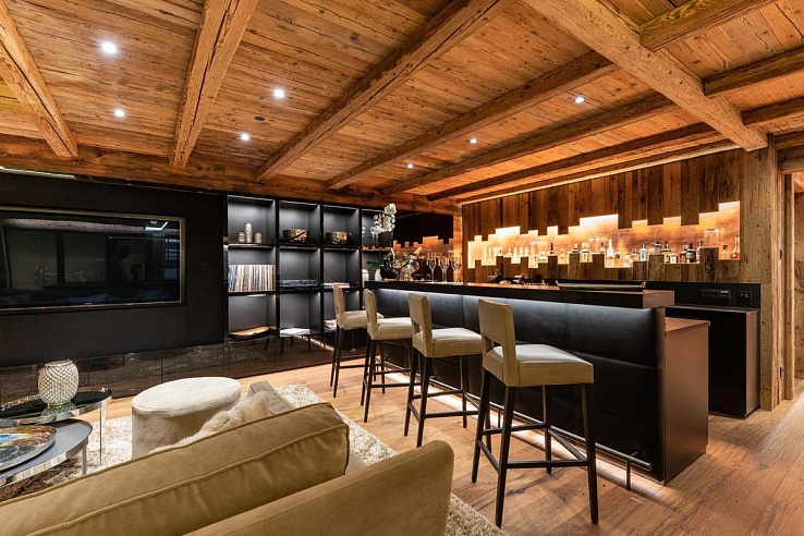The entertainment area within Chalet Überhaus boasts a modern snooker room, bar, library, TV, and games area, ensuring enjoyment for parents, teens, and children alike. A large cinema room with a big screen, excellent sound, and plush seating adds to the luxurious experience.
