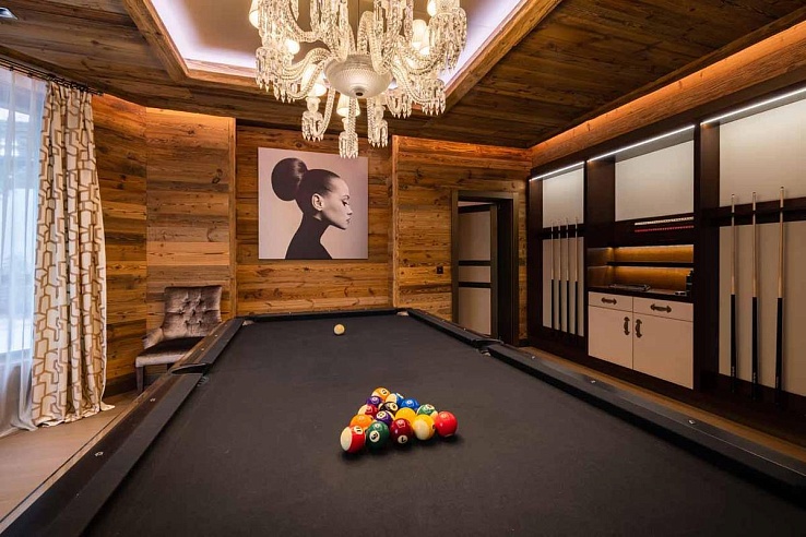 For evening entertainment, the shared billiard room is an ideal spot to host a tournament. After a day's activities, guests can relax in the communal high-tech cinema and enjoy the latest blockbuster film. Additionally, a dedicated office space allows guests to catch up on any pending work during their holiday, away from the distractions of the chalet's amenities.