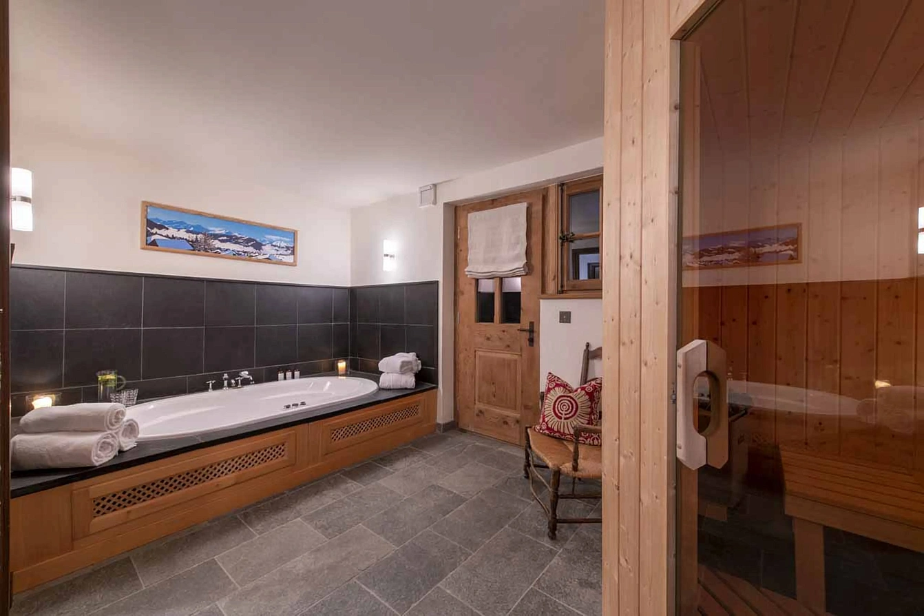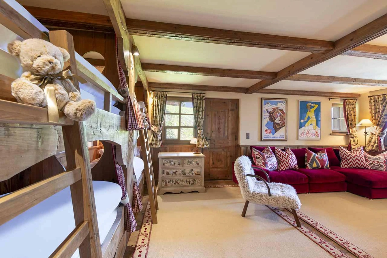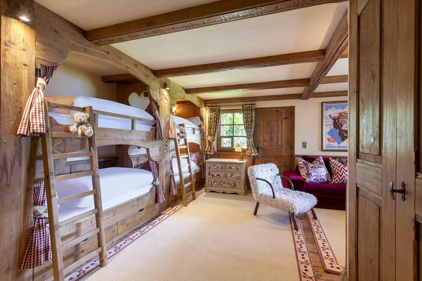 Accommodation is thoughtfully arranged for families and groups. The main chalet sleeps twelve across five en-suite bedrooms. The top-floor master suite under the eaves offers a private retreat with a spacious en-suite. The lower ground floor hosts two double bedrooms and one twin/double room, each with en-suite shower rooms, alongside a delightful quad bunk room with an en-suite and TV snug, perfect for children. For ultimate privacy, a charming, separate mazot less than a minute's walk away provides a cosy living area and an upstairs double bedroom with a shower, ideal for grandparents or guests seeking independence.