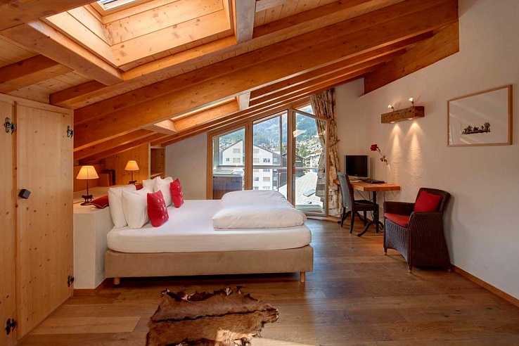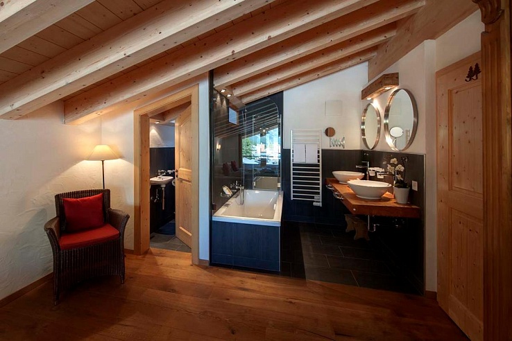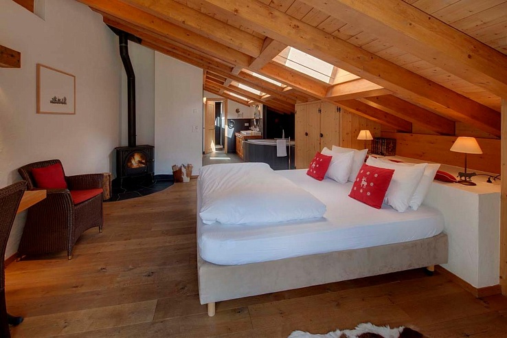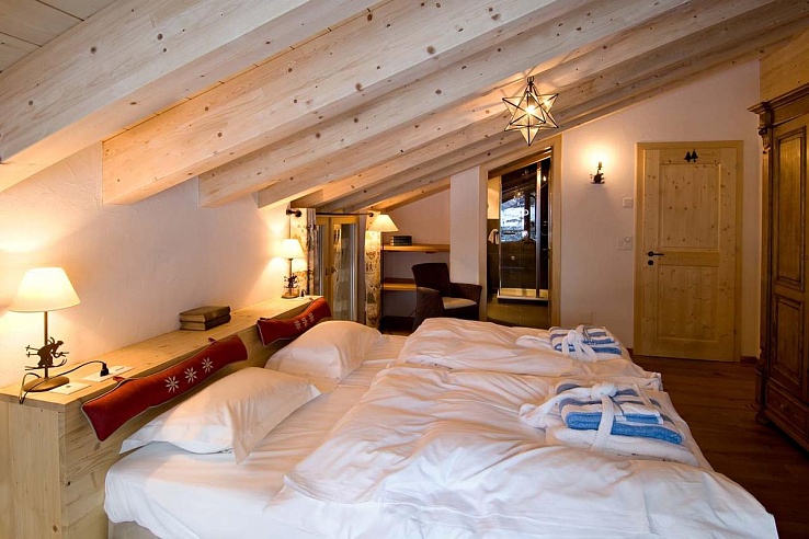 Spread across the top floor of a Swiss chalet, Zerm256 can accommodate up to 10 guests in its 5 en suite bedrooms.