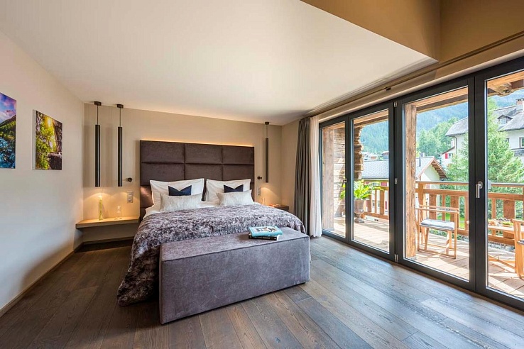 Centrally positioned in Zermatt, the Christiana Penthouse boasts stunning views of the Matterhorn and is conveniently close to the primary ski area. This newly constructed penthouse apartment exudes elegance and sophistication. Spanning two levels, it comfortably accommodates up to 14 guests across seven pristine bedrooms.