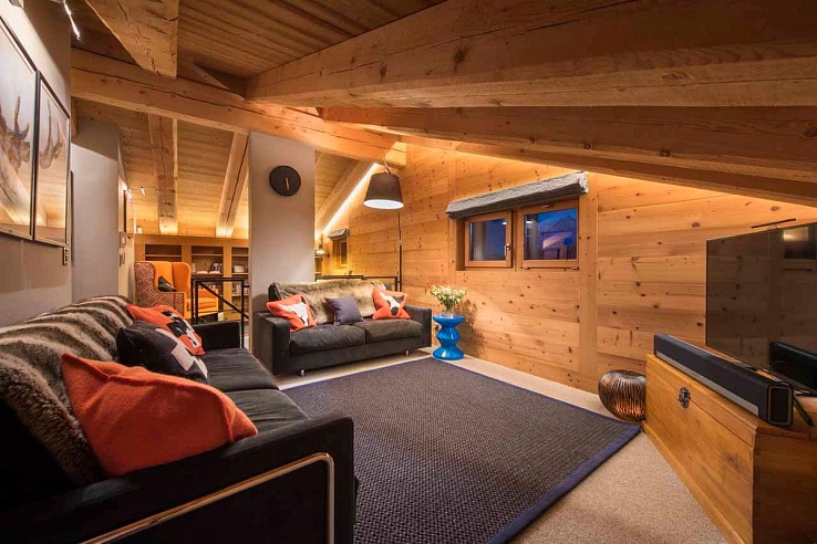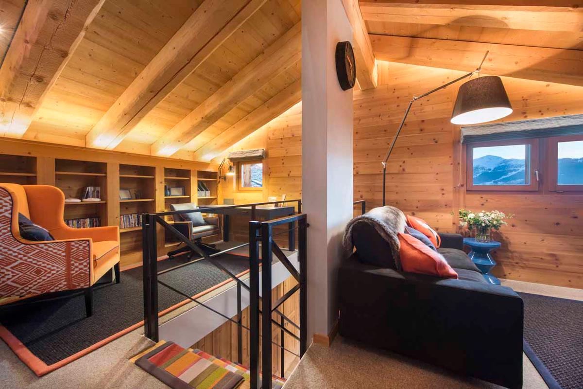 Perched in a prime location between Verbier's Savoleyres lift station and the Les Moulins nursery slope, Verb332boasts an elevated position with breathtaking south-facing views. This 220m² duplex penthouse features an inviting open-plan living and dining area, centered around a splendid stone fireplace. Charming half-moon French windows lead to a balcony, offering impressive vistas of the surrounding peaks. Adjacent to the wood-paneled living space is a fully equipped kitchen.