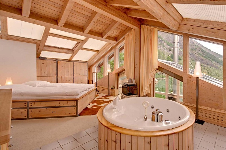 Zerm241 shelters four double bedrooms, each equipped with TVs and en-suite facilities. Yet, it's the free-standing Jacuzzi bath in the master bedroom on the top floor that steals the spotlight. Two bedrooms with Austrian twin beds grace the main floor, while an additional double bedroom resides on the ground floor.