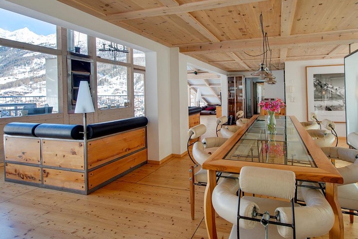 Nestled just above the town center, discover the extraordinary Zerm241 – a chic, light-filled haven that has graced the pages of numerous design magazines. Crafted by the internationally acclaimed architect, Heinz Julen, this contemporary 260 m² apartment perches above The Loft, offering a unique perspective of Zermatt village.