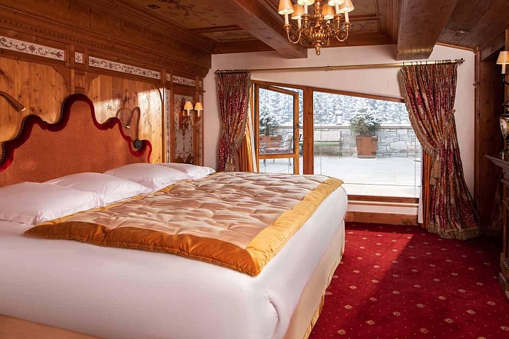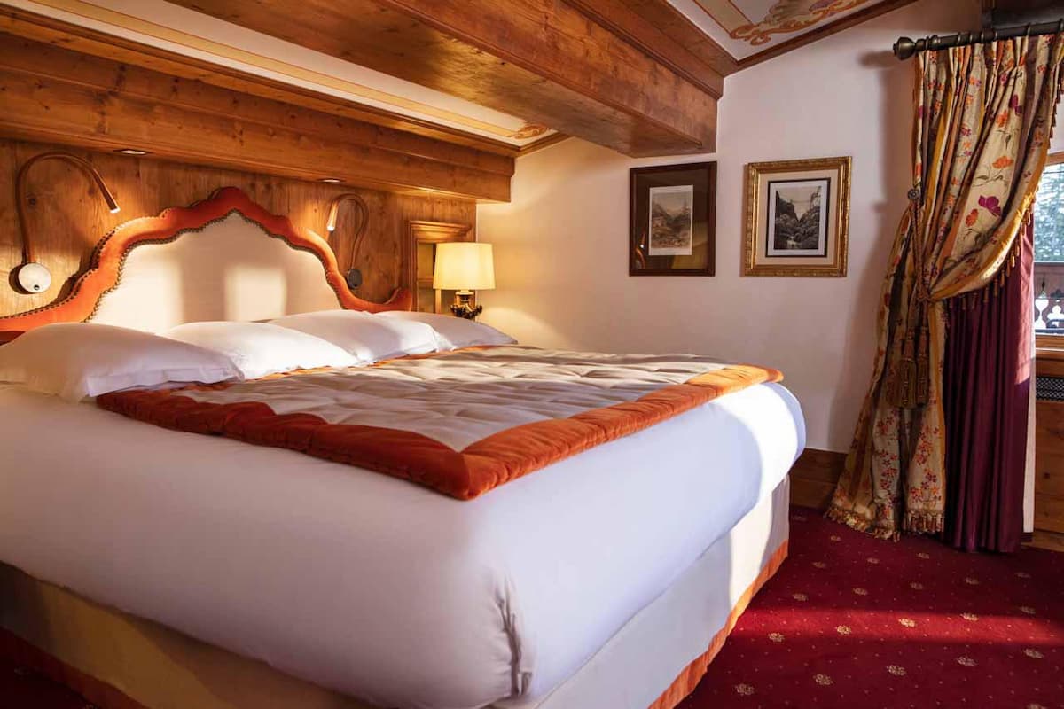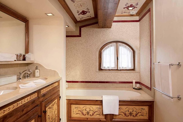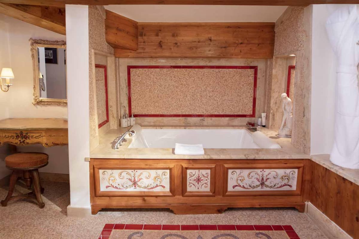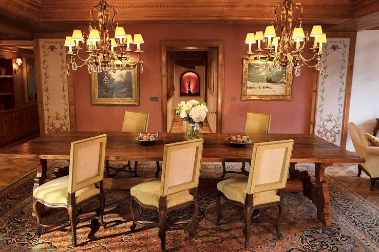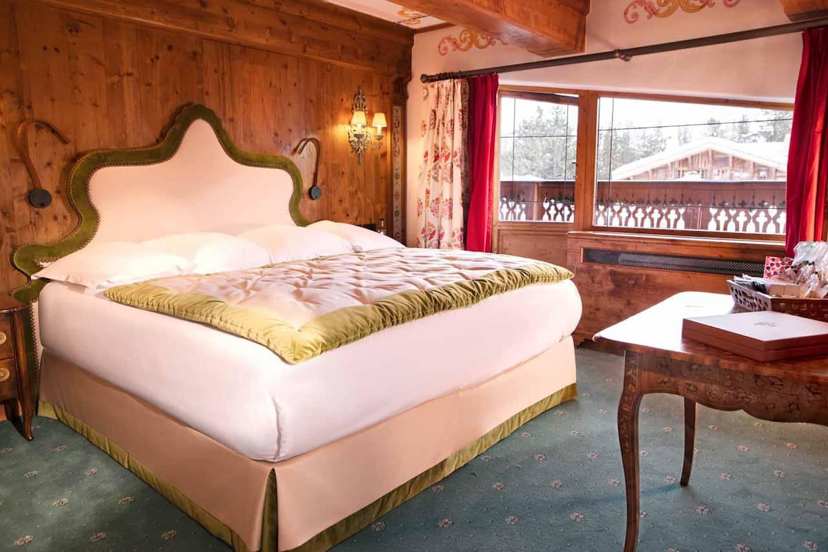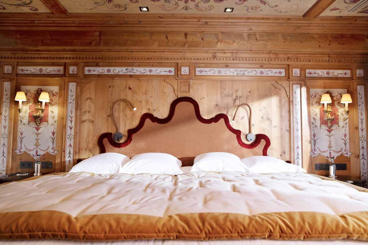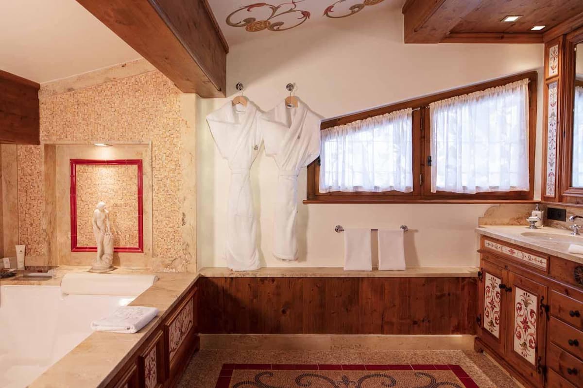 Four double/twin bedrooms exude 19th-century grandeur with bespoke wood paneling, balconies, and lavish dressing rooms. Each en-suite bathroom boasts steam showers, deep soaking tubs, and sensory lighting. The master suite’s mountain views epitomize alpine opulence.