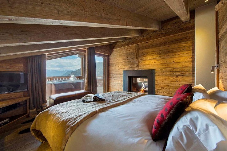 The master bedroom is a highlight, featuring a luxurious bathtub, a fireplace, and magnificent views. Additionally, there are two versatile twin/double bedrooms and a children's bunk room with a mezzanine area for TV viewing.