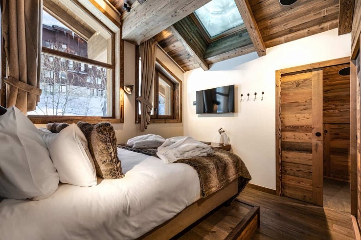Perched in Legettaz with true ski-in/ski-out access to Santons piste. Just 400m to main lifts/snow front via gentle slope; 500m (10-min walk) to Val d’Isère centre. Legettaz beginner lift nearby. Shuttle service included (B&B basis).