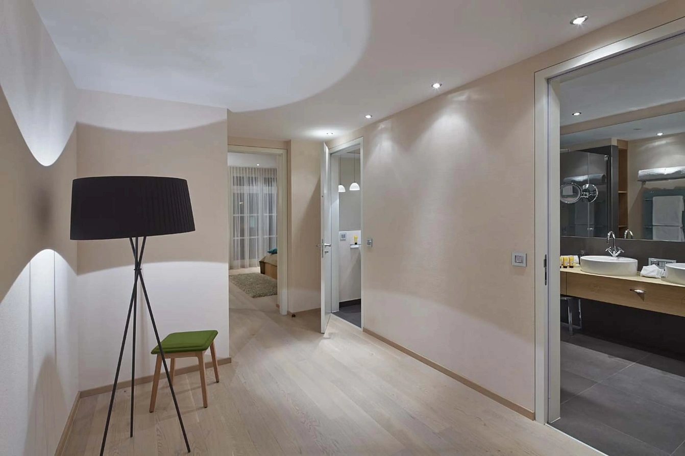 Piz Glüna Apartment, St. Moritz Bad: a prime location directly connected to the Kempinski hotel and adjacent to the Signalbahn cable car for Corviglia slopes. Within walking distance of the resort centre, boutique shops, restaurants, and the casino.