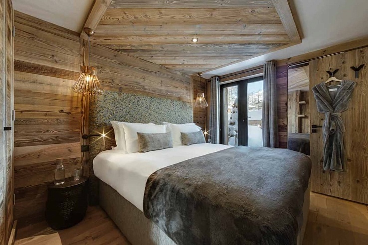 Nestled in the Le Crêt neighborhood of Val d'Isère, Penthouse Rocca is just 50 meters from the bus stop and 400 meters from the lifts. Just finished in 2019, this charming penthouse features recycled beams and cathedral windows, offering panoramic vistas of the ski lifts in Le Fornet and the gorge in La Daille.