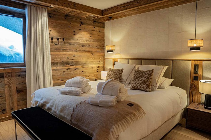 The chalet boasts a prime ski-in/ski-out location on the Santons piste, with the main lift hub just a two-minute ski away. For those traveling by car, the village center can be reached in approximately six minutes.