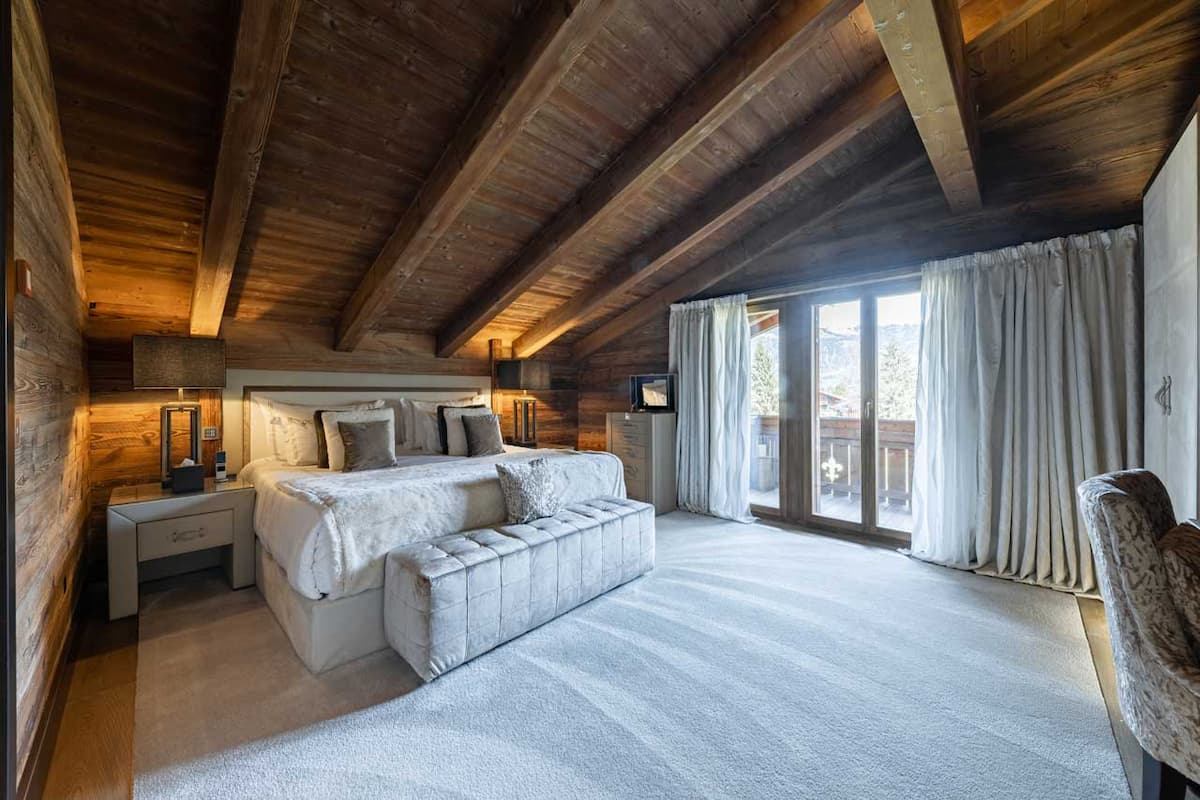 Retreat to two serene and generously proportioned master bedrooms, each appointed with a super-king bed, a private balcony for morning vistas, and a lavish en-suite bathroom showcasing striking marble finishes and double vanities. Thoughtfully designed walk-in dressing rooms provide ample, organized space for ski attire and evening wear, ensuring a truly indulgent living experience.
