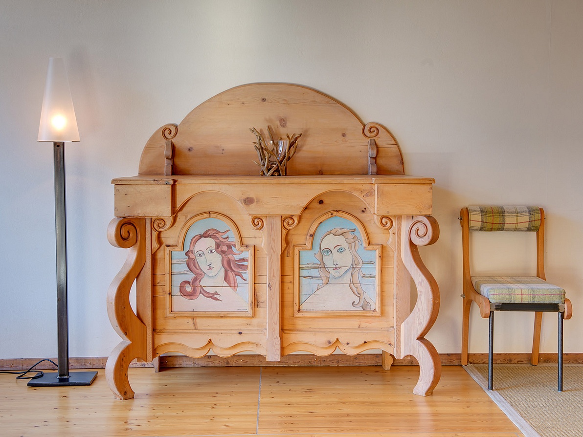 - Cozy Art (20 m², 2 guests): 1 freestanding double bed, artistic interiors, showcases Heinz Julen’s original artworks.