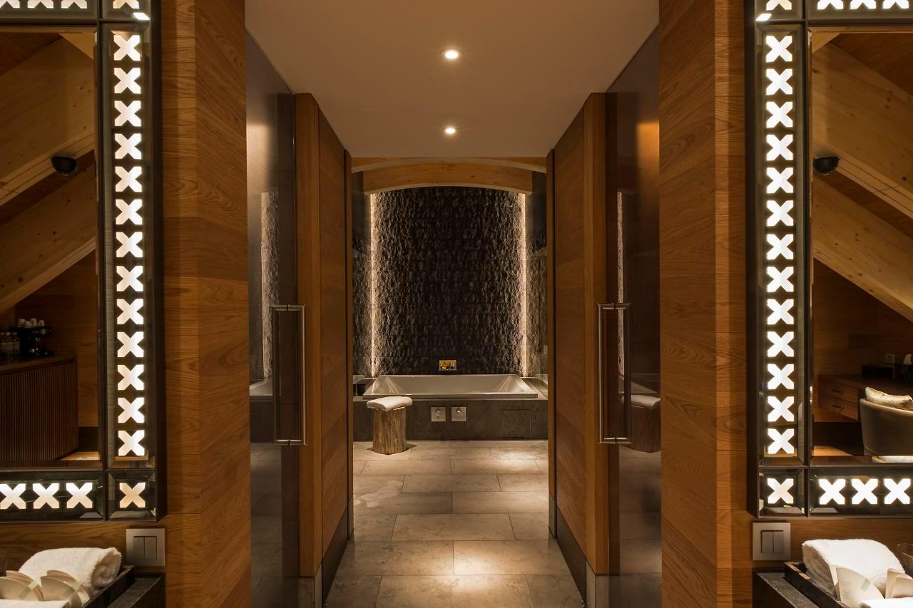 The Furka Suite's crown jewel is its exclusive wellness floor. Etched in stone and timber, this private sanctuary features a soothing Jacuzzi, invigorating sauna, and cleansing steam room, complemented by a plush relaxation bed – your personal alpine spa. Beyond your suite doors, The Chedi's extraordinary facilities beckon: immerse in the 35m indoor or 12m outdoor heated pools, explore the extensive sauna landscape, rejuvenate in treatment rooms, or maintain your routine in the state-of-the-art gym. Unwind fireside in the legendary Cigar Library (housing the world's largest hotel collection) or the Wine Library, savor Michelin-starred Japanese cuisine or Alpine-Asian fusion delights, and indulge in apres-ski at chic bars.