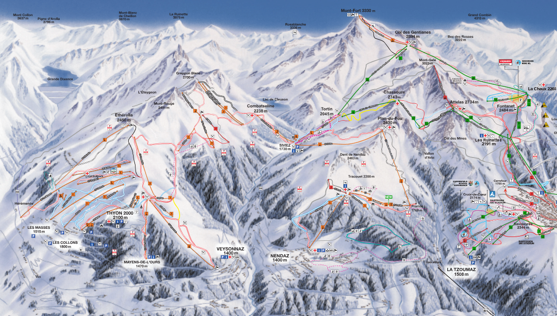 The 59 ski area stretches from 1,800 to 3,300 metres, all accessible on a single pass. Across the Four Valleys, 95 lifts connect 410 kilometres of pistes to an extensive network of guided off-piste itineraries for the accomplished skier.